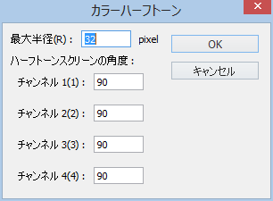 メニュー「フィルター」-「ピクセルレート」-「カラーハーフトーン」を選択。