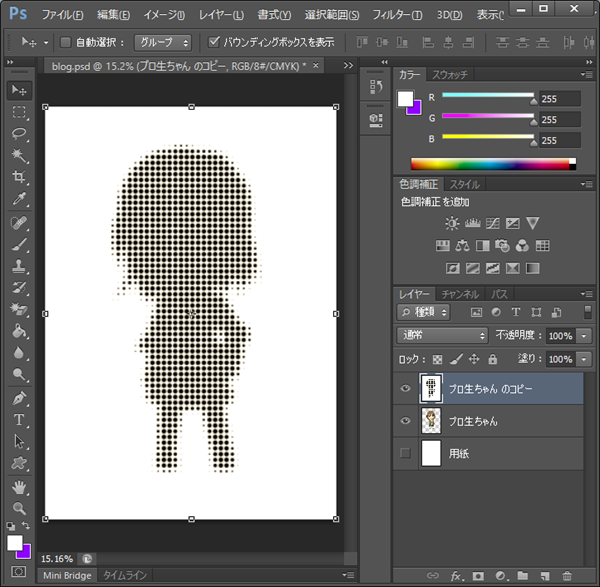 [Photoshop] キャラに水玉模様のシルエットを付ける