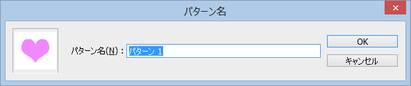 そして、メニュー「編集」-「パターンを定義」を選ぶと上図のようなダイアログが開くので、名前を付けて OK ボタン。これでパターンの登録が完了。
