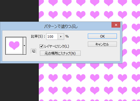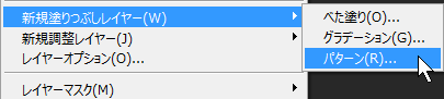 メニュー「レイヤー」-「新規塗りつぶしレイヤー」-「パターン」を選択。