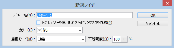 表示されたダイアログで、レイヤーの名前など設定できるけど、ここではそのまま OK ボタンをクリック。
