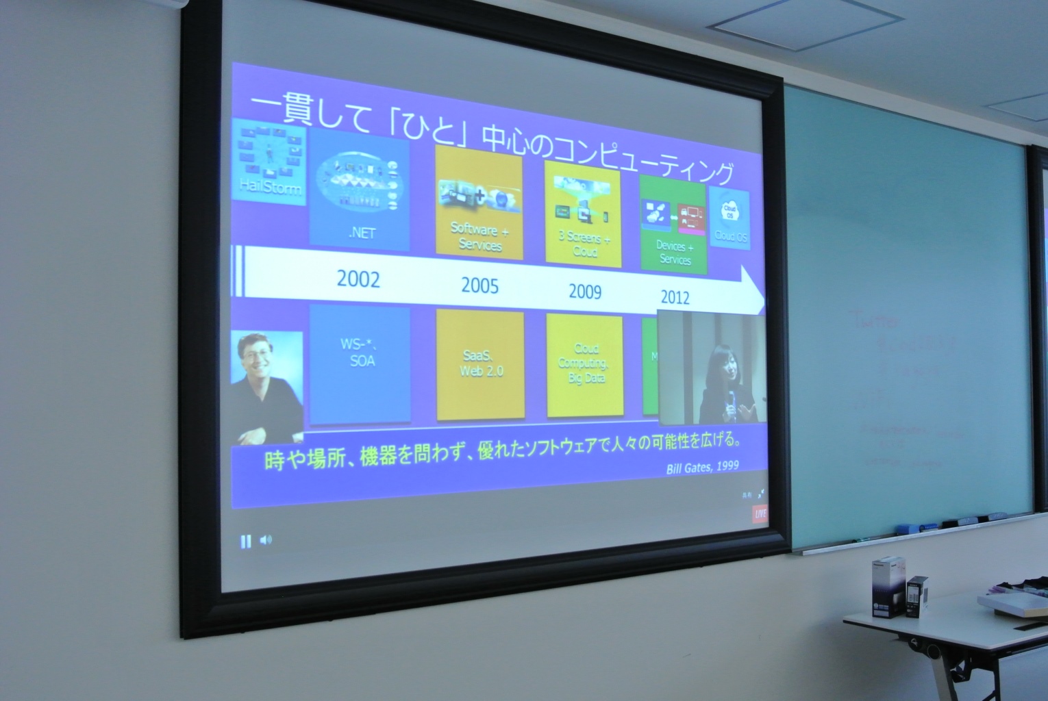 Ustream が配信されず、若干冒頭が切れる。POP 体フォントとか色とか変わったスライドだなーと。