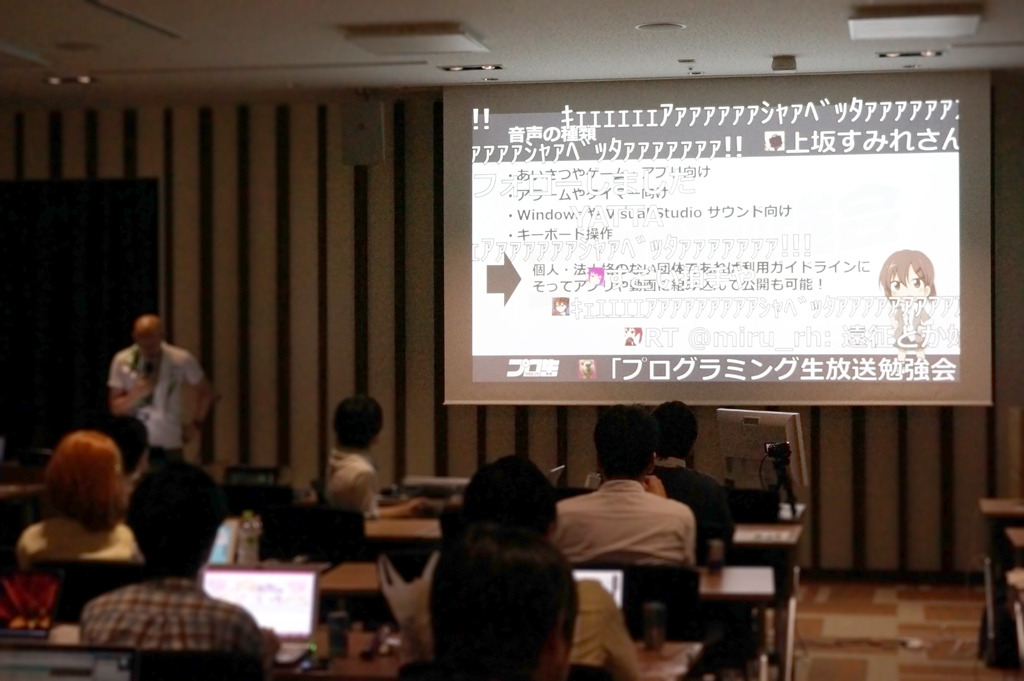 プロ生勉強会は、スクリーン上のコメントを表示するニコニコメソッドが一応特徴となっています(接続する PC の環境などによるので結構できていないこともありますが)。これにはオープンソースの MISAO を利用しています。ライブでも使われているとは全然知らなかったですね!
