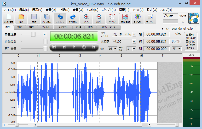 SoundEngine Free を使って WAVE ファイルの必要な部分だけ切り取ります。