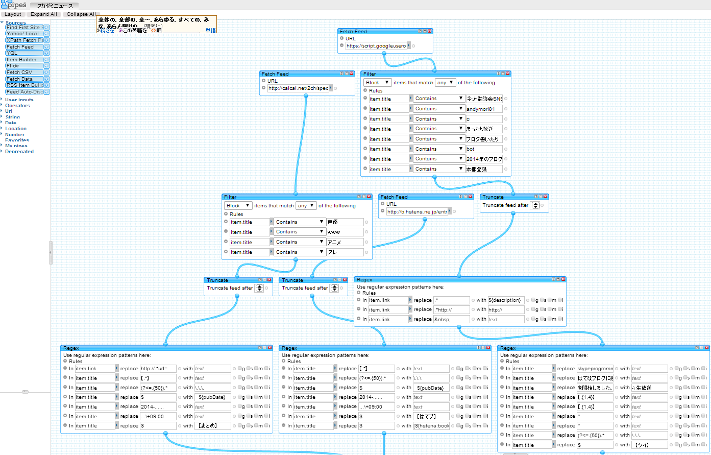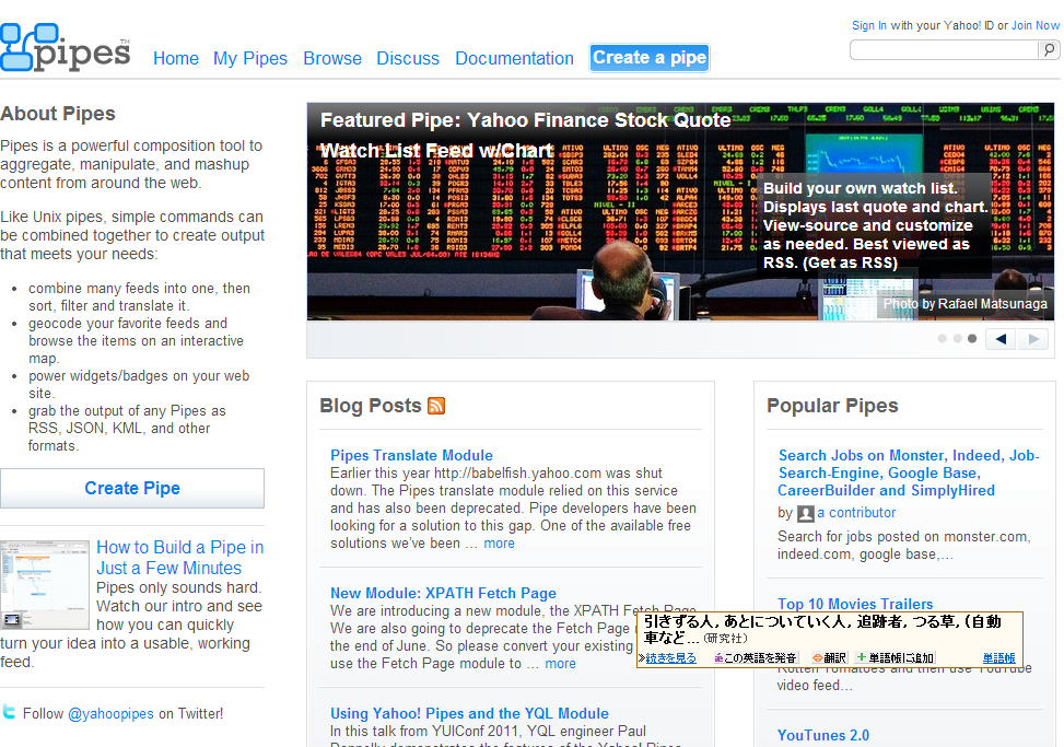 Yahoo!Pipes まだ続いていたのですね(リリースは2007年みたいです)。