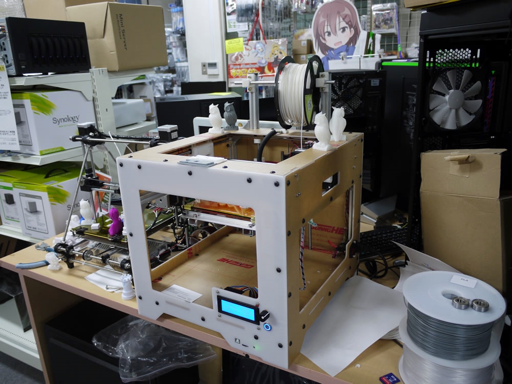 3D プリンターは、オリオスペック 協力のもと「3D PRINTER REPRAP PROFESSIONAL」です。 プリンターの上にプリントしたロゴがのっています。