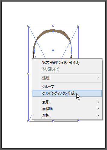 選択ツールで、画像とシェイプの両方を選択した状態で、右クリックメニュー [クリッピングマスクを作成] を選びます。