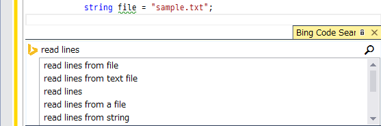 [Visual Studio] IntelliSense から自動変更されたサンプルコードを貼り付けられる拡張 “Bing Code Search for C#”