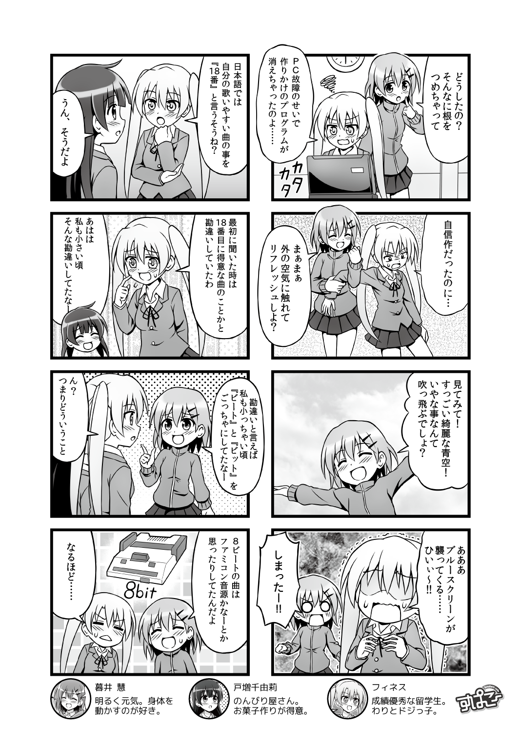 [Web Comic] 情報処理研究会漫画 すぱこー Ver. 52014/03/012016/06/07Pronama-chan,Web Comicすぱこー,にちか暮井 慧(プロ生ちゃん)と部活「情報処理研究会」のメンバー 戸増千由莉とフィネス・ヒルヴィレッジが活躍する Web コミック「すぱこー」! 情報処理研究会メンバーが活躍するショートストーリーは プロ生ちゃん本 にも掲載しています。 前: Ver. 4 次: Ver. 6 Pronama-chan,Web Comicすぱこー,にちかPosted by jz5