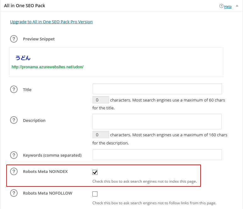 All in One SEO Pack などのプラグインを利用してれば、固定ページの編集画面で簡単に指定もできます。