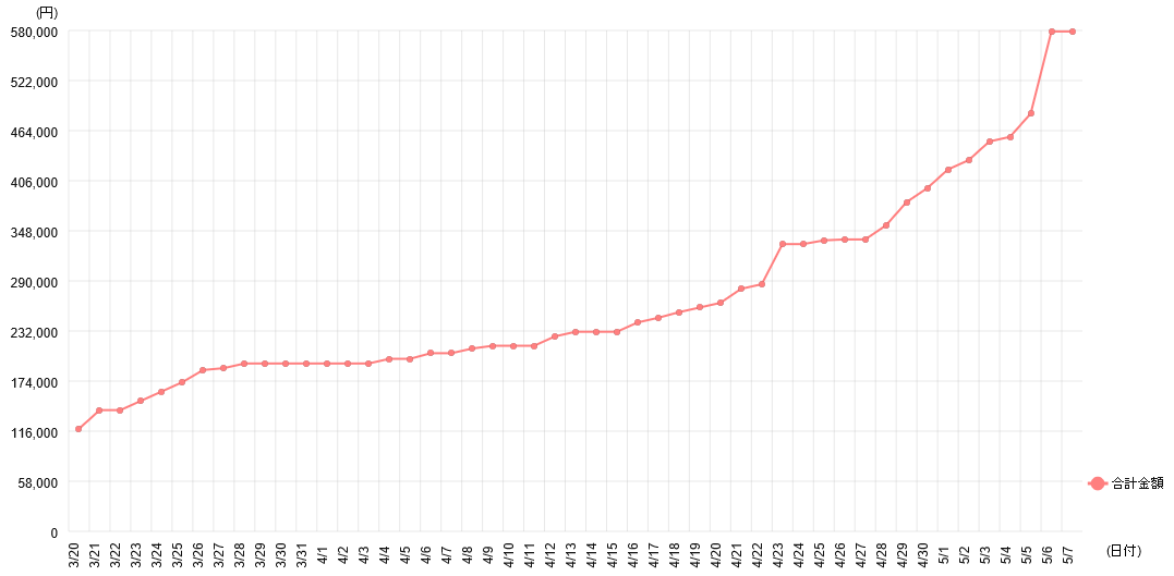 プロジェクト提案者(プロ生)は、申し込み人数の推移などを CROSS クラウドファンディング管理サイトで確認できます。毎日サイトを見ていればわかる情報ですので掲載しちゃいますね。ちなみに、申込者の個人情報はわかりません(CROSS クラウドファンディング側がグッズを代理発送します)。
