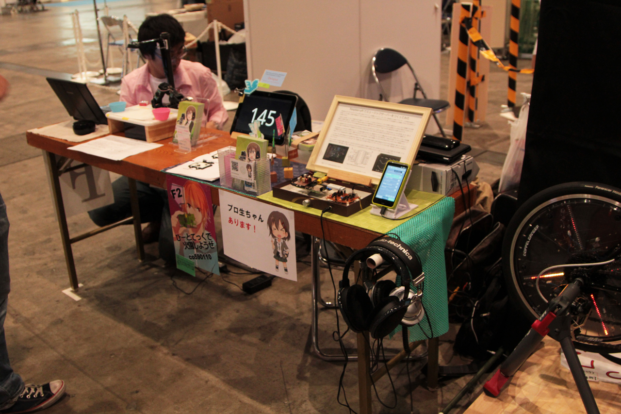 4/26, 27 ニコつく4 プロ生メンバーのサークルスペースでプロ生ちゃんのポストカード配布あります! で紹介した、出展サークルの技術部ジャンルの「ニコニコ技術部員(自称)の作業日誌」の @kirin_nico さん、「ひーとてっくで火傷しようぜ」の @_kz6 さんの当日の展示スペースの写真です。