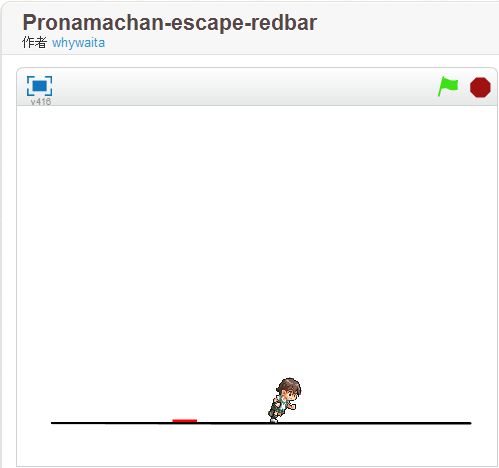 赤いバーをジャンプで避ける Scratch 製ゲーム “Pronamachan-escape-redbar”