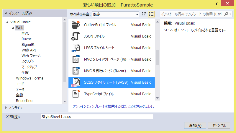 Sass の Visual Studio 拡張は、今回は使っていませんが、SassyStudio というのも以前からあるようです。
