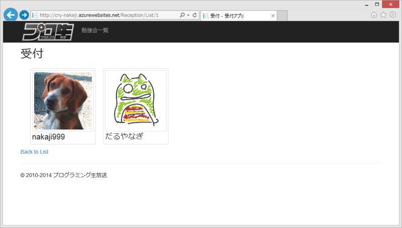 プログラミング生放送勉強会 四国支部長の なかじ さんが、6/11 朝方 突如として 受付アプリ を公開。プロ生勉強会グループウェアでは、制作中であることを 6/8 からほのめかしていましたが、全容を自 Blog で公開しました。