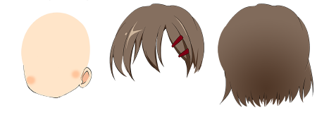 頭部は、輪郭(頬や肌、耳など)・前髪・後髪に分けました。元イラストは一体化しているし、情報がない部分もあるので一番苦労しました。