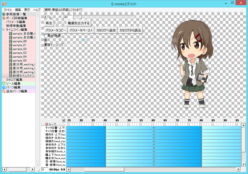 2014/6/27、E-mote Free Movie Maker「えもふり」 が公開されています。いくつかのレイヤーイラストを用意することで簡単に 2D キャラクターのアニメーションが作れます。