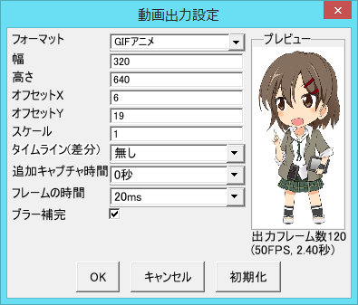 出力形式は、連番 PNG・WMV・アニメ GIF の3種類です。