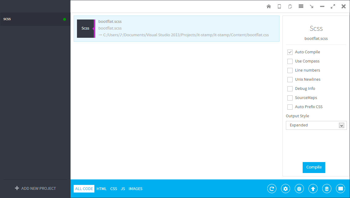 Prepros App は、LESS, Sass, SCSS, Stylus, Jade, Slim, Coffeescript, LiveScript, Haml, Markdown がコンパイルできる多機能コンパイラーです! それ以外にも JavaScript minify や、PNG, JPEG 画像サイズの最適化もでき、有償版はさらにいろいろな機能が使えます。Windows/Mac 版があります。