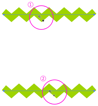 できたギザギザ模様をコピーして、図のように開始と終了する位置に置きます。