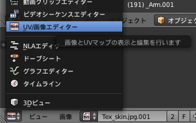 方法は、「UV/画像エディター」の表示に切り替えて……。