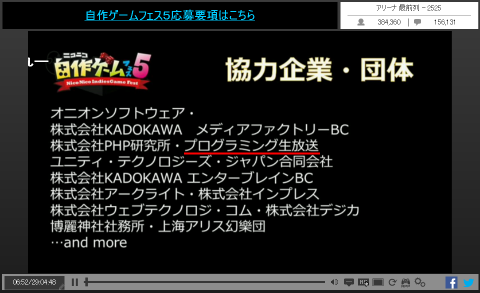 最初に「ニコニコ自作ゲームフェス5」の案内があり、今回の協賛企業・団体が発表されています。