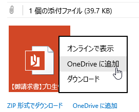 Outlook.com との連携も強化されています。添付ファイルをそのまま OneDrive へ保存できるようになっています。
