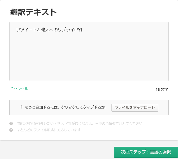 最初に、翻訳テキストを入力します。ファイルからの読み込みも対応しています。