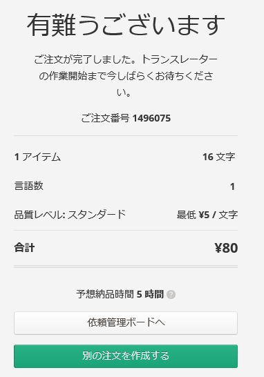 支払い後、翻訳待ちとなります。ダッシュボードで、現在のステータスを一覧できます。