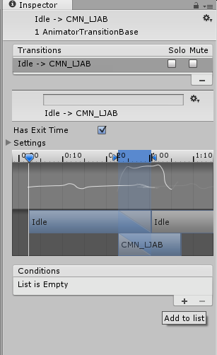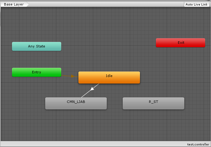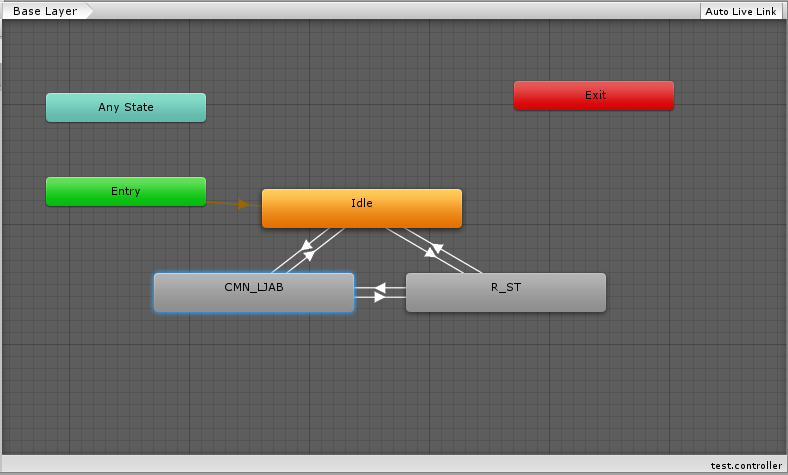 Entry から矢印が伸びている State(Idle) を右クリックし、Make Transition を選択。矢印をのばして、次の State(CMN_LJAB) をクリックします