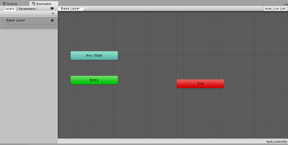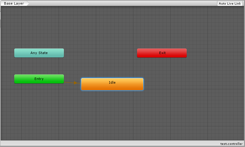 ※ 画面は、Unity 5 での表示。Unity 4 の場合、Any State・Entry・Exit はありません。