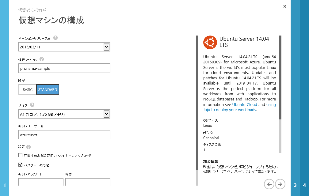 Ubuntu 14の仮想マシン作成