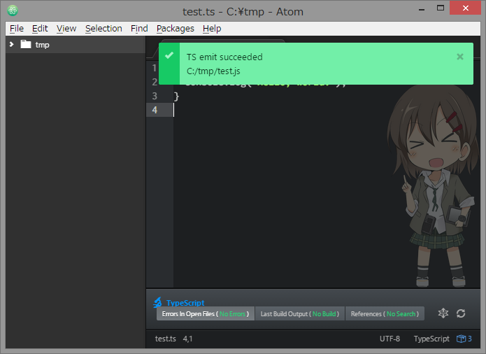 Atomプロ生ちゃん拡張更新しました(ver 0.1.4)。使ってる人はgit pullしてみてください。巷はVisual Studio Codeで盛り上がってるけどhttps://t.co/uc8BsQlKJS