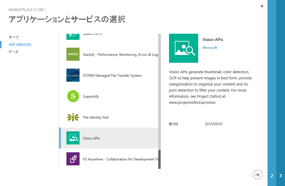 Azure Marketplace でサービスの選択