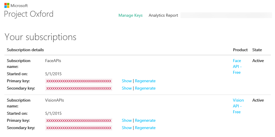 https://dev.projectoxford.ai/Developer にアクセスして、Key を取得します。