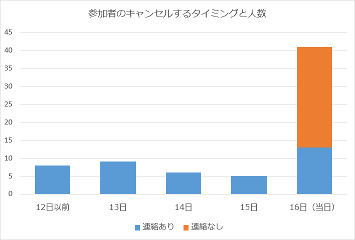 参加登録者がキャンセルしたタイミングをグラフ化しました。