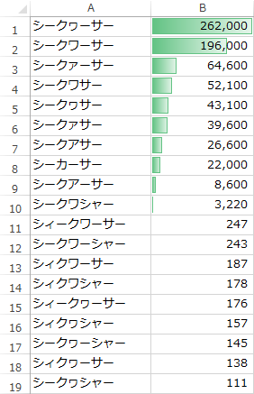 すべての結果は以下の通りです。一応すべて5件以上ありました。