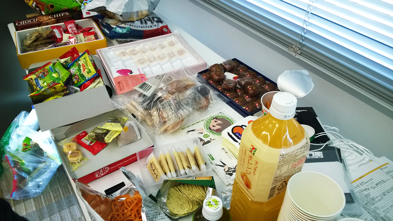 以前までは、スタッフが用意していましたが、最近は、参加費代わりに100円前後のお菓子持ち寄りに変えました。