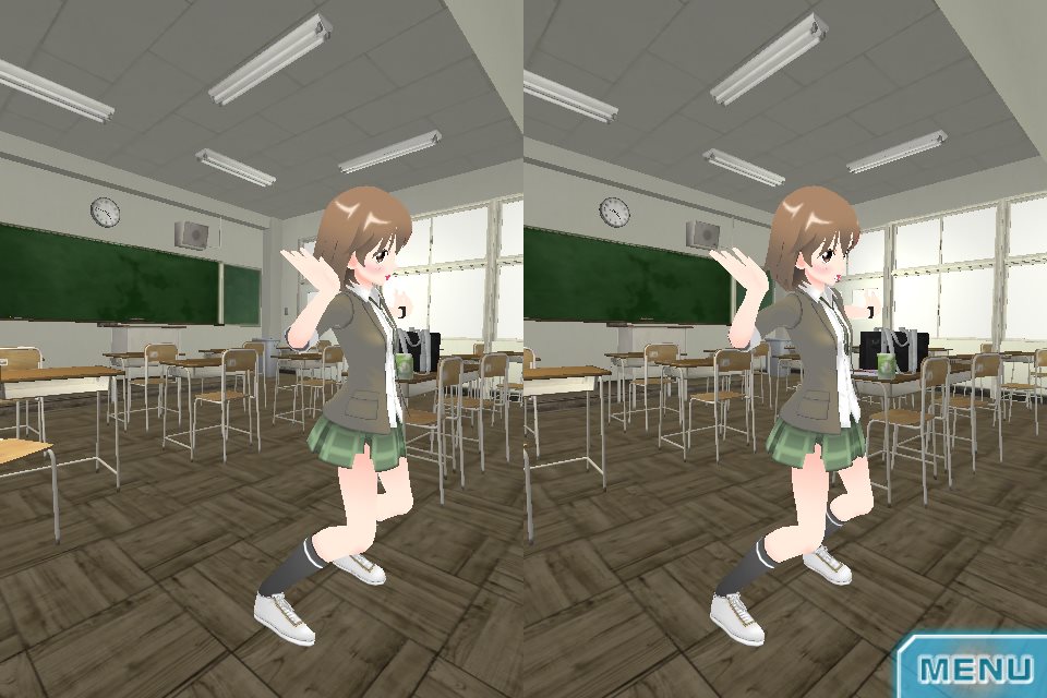 音楽に合わせて踊ります。いろいろ見る角度を変えたり、タッチや(あなたが)ジャンプしたときのアクションもあります。