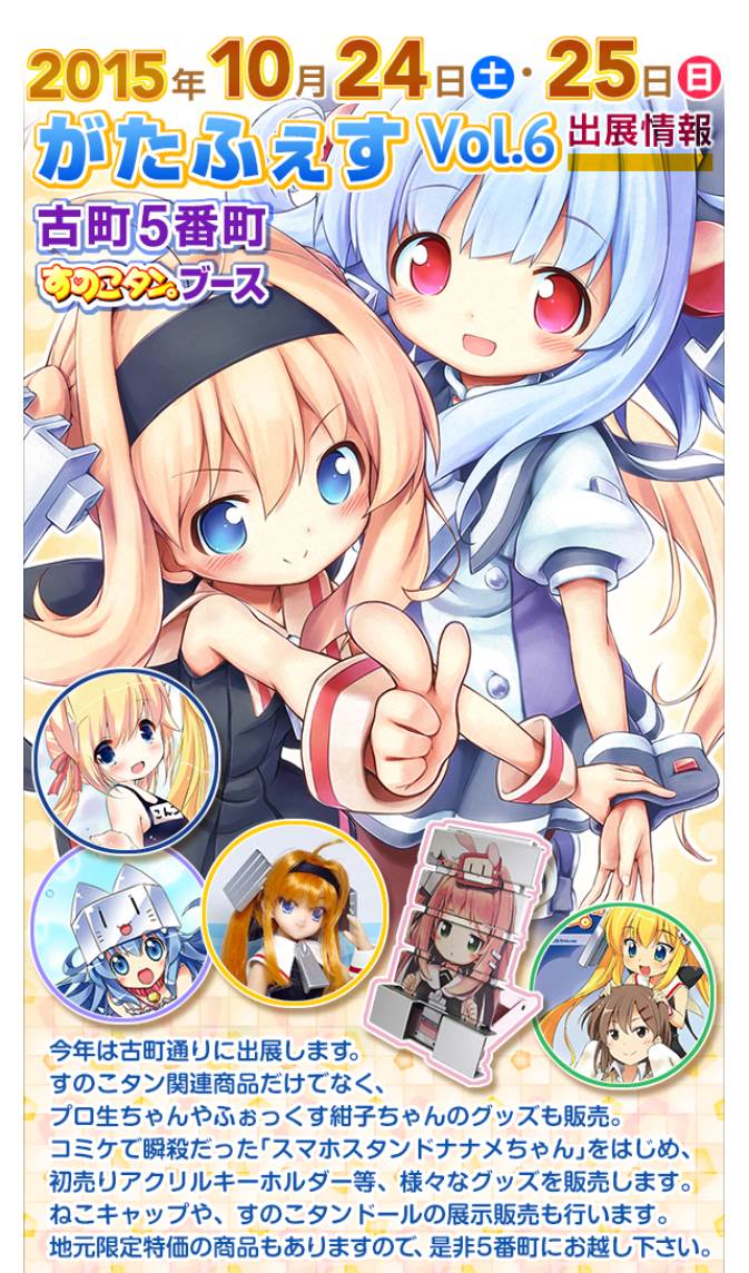 10/24, 25開催「がたふぇす Vol.6」の「すのこタン。」ブースでプロ生ちゃんグッズ販売!