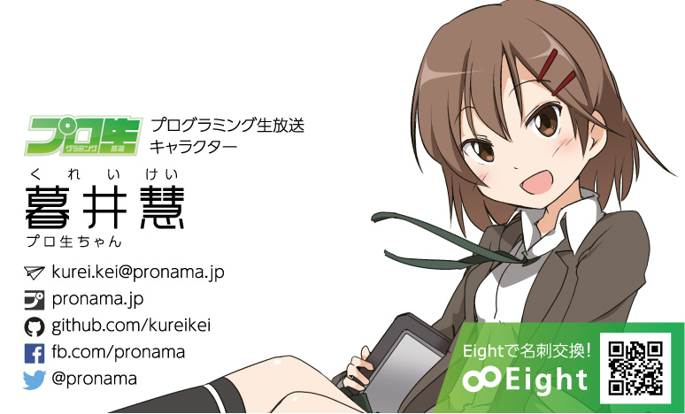 名刺管理アプリ「Eight」では、プロ生ちゃんと名刺交換 もできます! プロ生ちゃんの新しい名刺と交換してみてください。