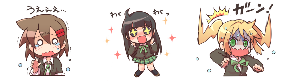 ささくらさんによるかわいいアイコンに新作追加です(4個追加)! 情報処理研究会のメンバー3人組、慧・千由莉・フィネスのメッセージ付きアイコンです。アイコンは、SNS のアイコンとしてや、アプリや動画の作品などに使えます。