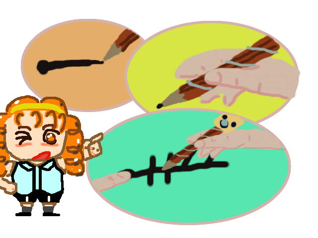 - 紙に鉛筆で帯を描く。一端(右利きなら左側)には丸い押さえ部を用意。