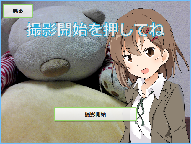 好きなポーズを決めて「撮影開始」を押下すると、プロ生ちゃんが音声で「はいチーズ」と言ってくれます。