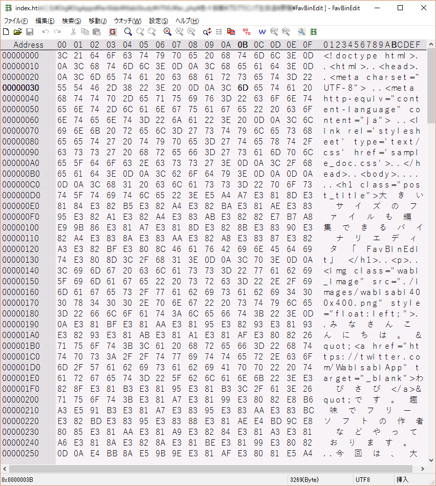 大きいサイズのファイルも編集できるバイナリエディタ「FavBinEdit」
