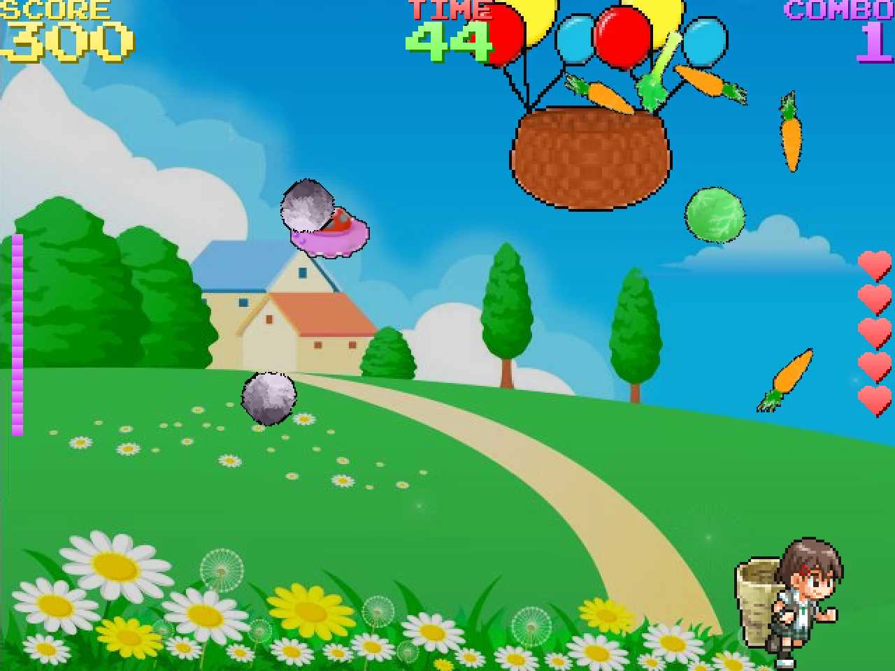 ステージクリアにはスコアの制限がありません。無理に野菜を拾わなくても頑張って避け続ければクリアできます。