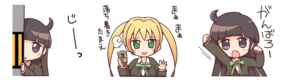 ひさしぶりに、ささくらさんによるかわいいアイコンに新作追加です! 情報処理研究会のメンバー3人組、慧・千由莉・フィネスのメッセージ付きアイコンです。今回は、千由莉&フィネスのアイコン4個追加です。