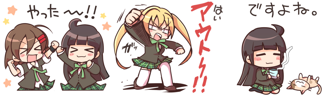 ささくらさんによるかわいいアイコンに新作追加です! 情報処理研究会のメンバー3人組、慧・千由莉・フィネスのメッセージ付きアイコンです。今回は、千由莉&フィネスのアイコン4個追加です。