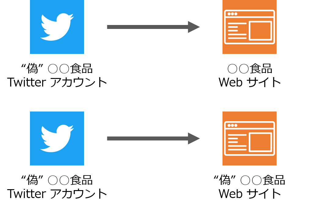 Twitter アカウントだけの情報では、公式アカウントかなりすましアカウントか判断できません。