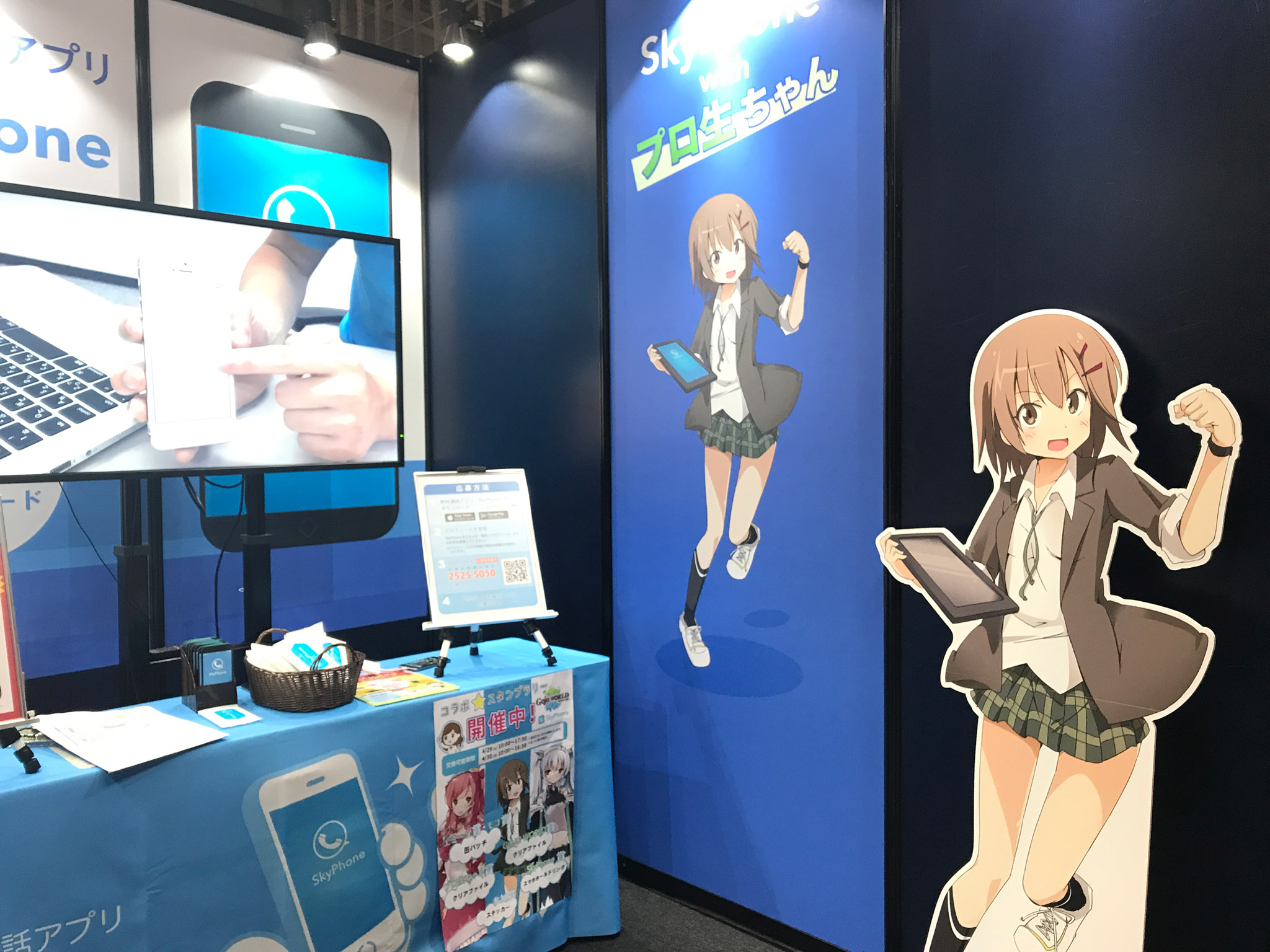無料通話アプリ SkyPhone ブースにはプロ生ちゃんが登場。